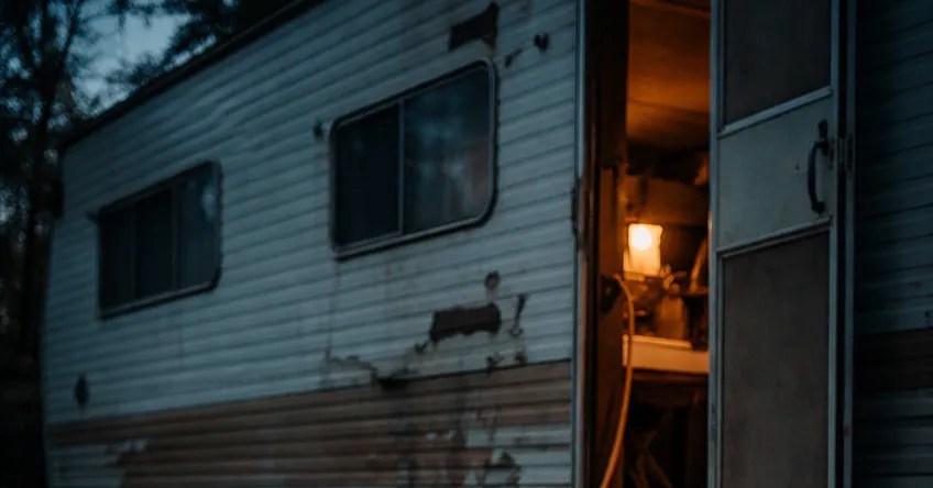 It had once been a camper. That was the rumor. He’d stripped it down and rebuilt it without finishing anything. Walls opened into nothing. Wires crossed where shelves used to be. Plywood met plywood and didn’t line up.